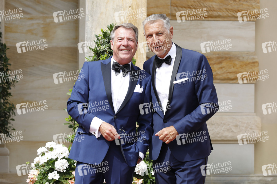 Patrick Lindner mit Ehemann Peter Schäfer bei der Eröffnung der 112. Richard-Wagner-Festspiele 2024 mit der Neuinszenierung von 'Tristan und Isolde' im Bayreuther Festspielhaus. Bayreuth, 25.07.2024