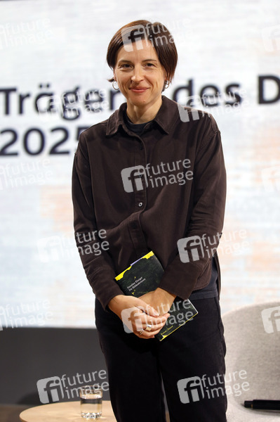 Dorothee Elmiger, Gewinnerin des Deutschen Buchpreises, auf der Literaturbühne von ARD, ZDF und 3sat bei der 77. Frankfurter Buchmesse 2025 auf dem Messegelände. Frankfurt am Main, 15.10.2025