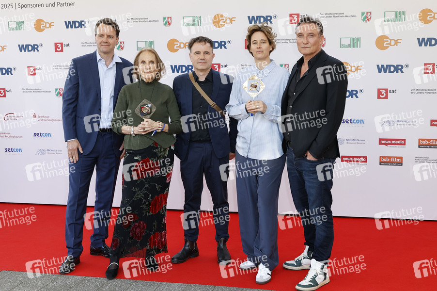 Gast, Gabriela Sperl, Thomas Wendrich, Pia Strietmann und Oliver Masucci bei der 61. Verleihung des Grimme Preises 2025 im Theater Marl. Marl, 04.04.2025
