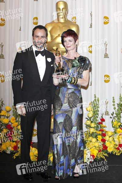 Tom Ford und Sandy Powell mit dem Oscar für das Beste Kostümdesign für 'Victoria, die junge Kaiserin / The Young Victoria' im Press Room der Oscar Verleihung 2010 / 82nd Annual Academy Awards im Kodak Theatre. Los Angeles, 07.03.2010