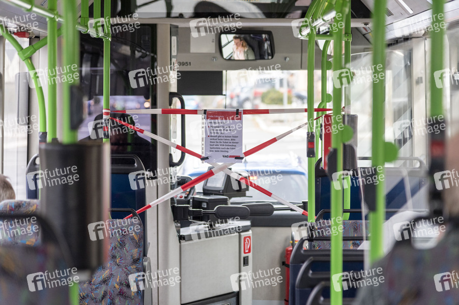 Abgesperrter Fahrerbereich in einem Bus. Maßnahmen wegen das Coronavirus. Nürnberg, 20.03.2020