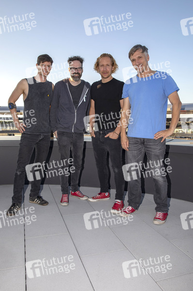 Sebastian Wagner, Rene Schwiers, Flo Peil und Bastian Campmann von Kasalla bei der Pressekonferenz vor dem OpenAir-Port Festival 2021 am Flughafen Köln/Bonn. Köln, 02.09.2021