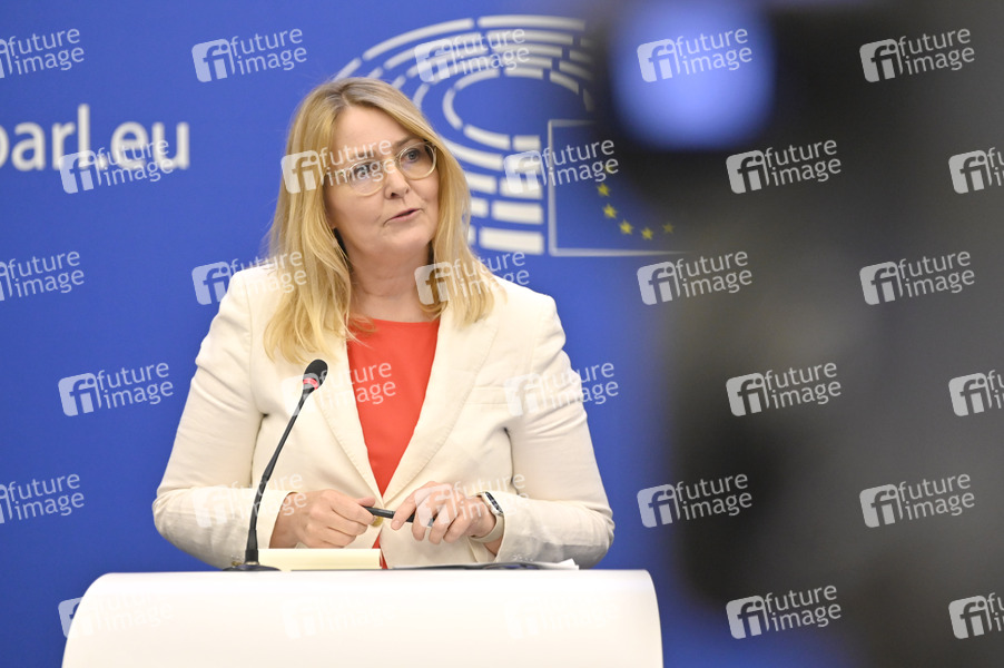 DSA, DMA, Pressekonferenz, PK, Pressestatement, Strasbourg, Europaparlament, EU-Parlament, EP, Parlament der Europäischen Union, Parlamentum Europaeum, Mitglied des Europäischen Parlaments, Politikerin, Dänemark, Socialdemokraterne, Fraktion der Progressiven Allianz der Sozialdemokraten im Europäischen Parlament, S&D