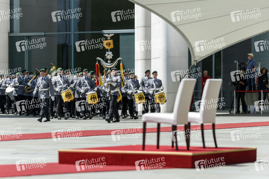 Beim Empfang mit militärischen Ehren für die dänische Ministerpräsidenten stehen Stühle im Hof des Bundeskanzleramts bereit. Berlin, 11.07.2017
