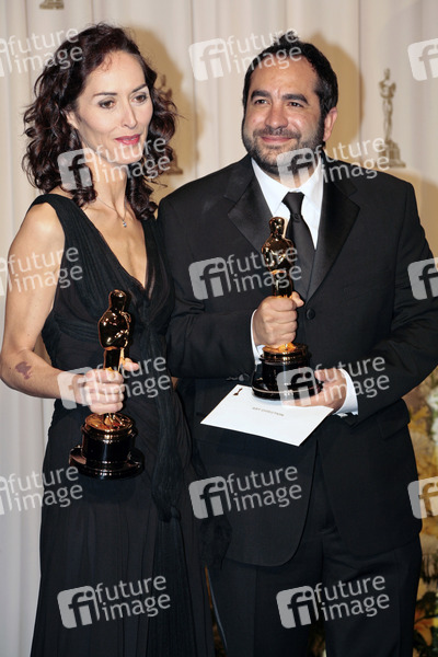 Pilar Revuelta und Eugenio Caballero mit dem Ocsar für das beste Szenenbild in 'Pans Labyrinth / El Laberinto del Fauno' im Press Room der Oscar Verleihung 2007 / 79th Annual Academy Awards im Kodak Theatre. Los Angeles, 25.02.2007