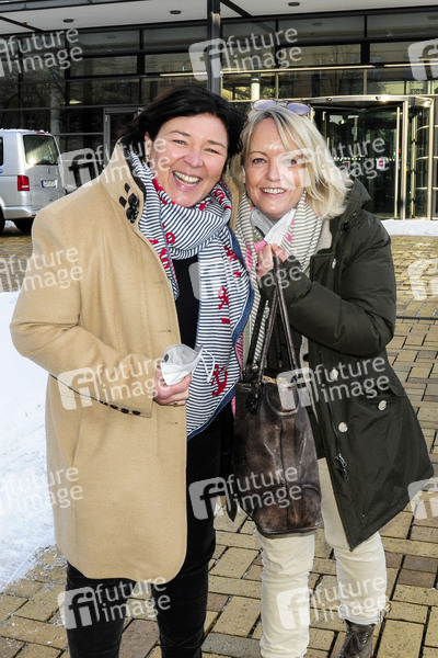 Vera Int-Veen mit Ehefrau Christiane 'Obi' Obermann bei der Ankunft zur Aufzeichnung der MDR-Talkshow 'Riverboat' im Studio 3 der Media City Leipzig. Leipzig, 12.02.2021