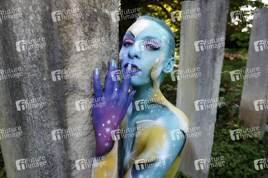 Bodypainting, Erotik, Frau, nackt, draußen, weiblich, Säulen, erotic, woman, nude, outdoor, female, columns