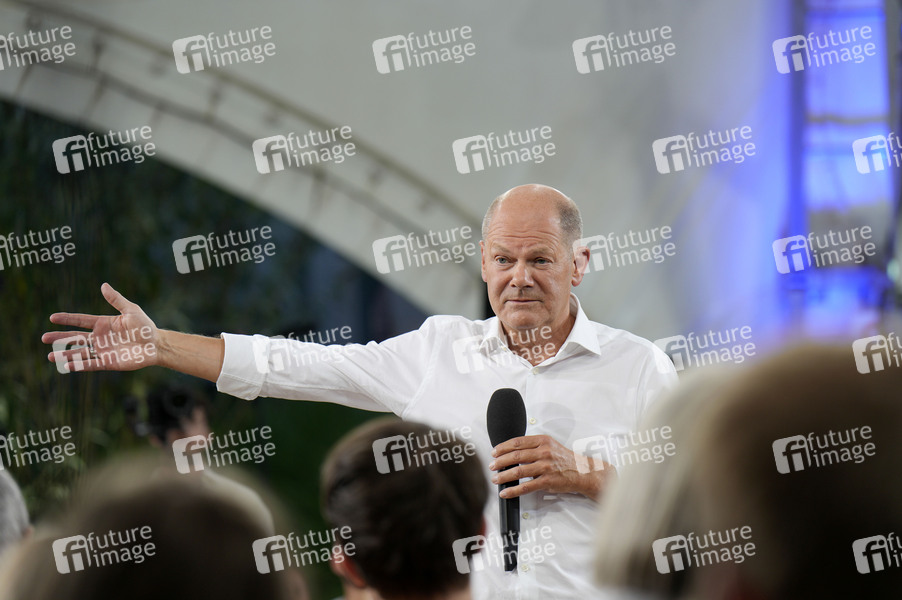 Olaf Scholz beim Kanzlergespräch mit Bürgern in der ufaFabrik. Berlin, 04.09.2024