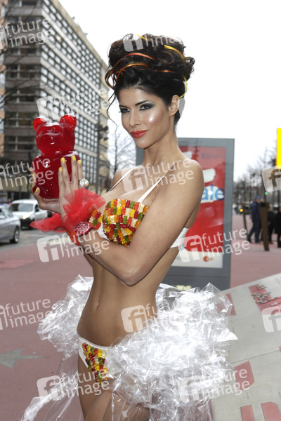 Micaela Schäfer präsentiert ihren persönlichen Berlinale Bären auf dem Boulevard der Stars, Berlin