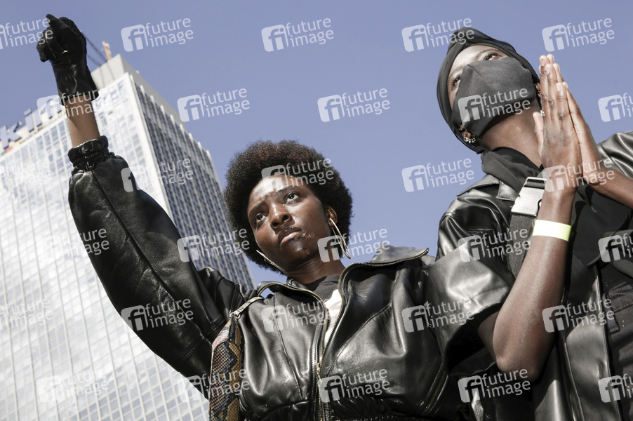 Demonstranten bei der 'Silent Demo' gegen Rassismus am Alexanderplatz. Berlin, 06.06.2020
