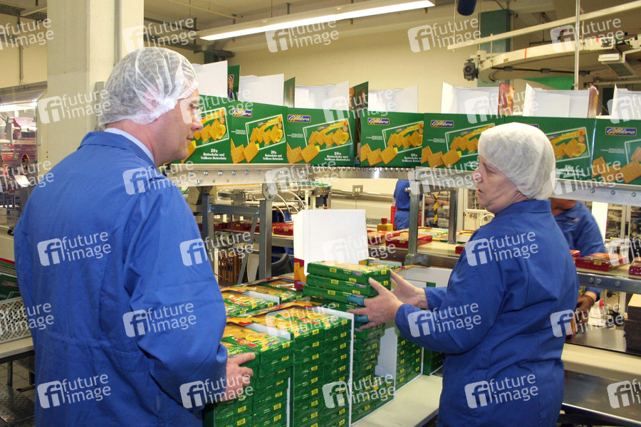 Ministerpräsident Wulff bei einer Betriebsbesichtigung des Bahlsen Werks, Barsinghausen