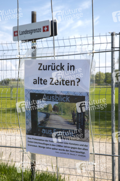 Symbolbild, Symbolfoto, Staatsgrenze, Kreuzlingen, Landesgrenze, Grenzverkehr, Grenze, Schweiz, Städtenachbarn, Grenze, Bodensee, Berufspendler, wirtschaftliche Interessen, Maßnahmen, Grenzstadt, Ausnahmeregelungen, Deutsch-Schweizer Paare, Familien, provisorischer Grenzzaun, Distanz, Symbol der Trennung, schmerzhafte Einschränkung, Einschnitt in das Leben, Grenzregion, schwierige Situation, Liebe in Zeiten von Corona, Eindämmung des Virus, Epidemie, Pandemie, Corona, Virus, SARS-CoV-2, Covid-19, Schutzmaßnahmen, Grenzübergang, anstecken, Corona-Krise, Coronakrise, Vorbeugung, Prävention, schützen
