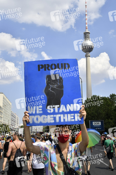 Demonstrationszug mit dem Motto 'Berlin Pride 2020' vom Nollendorfplatz über Potsdamer Straße, Wilhelmstraße und Unter den Linden zum Alexanderplatz. Berlin, 27.06.2020