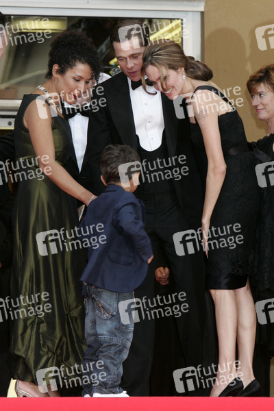 Mariane Pearl mit Sohn Adam, Brad Pitt und Angelina Jolie bei der Premiere des Kinofilms 'A Mighty Heart / Ein mutiger Weg' auf dem Festival de Cannes 2007 / 60. Internationale Filmfestspiele von Cannes im Palais des Festivals. Cannes, 21.05.2007