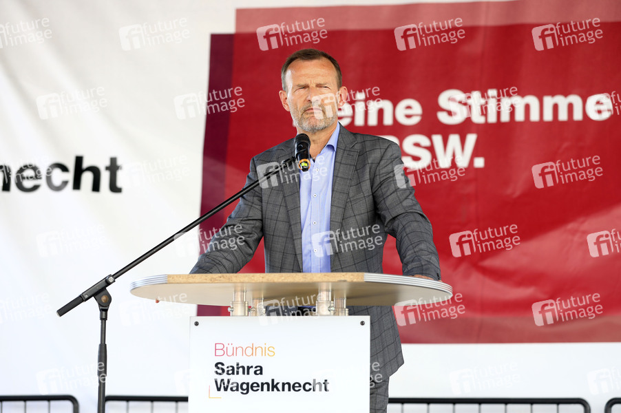 Jörg Scheibe bei einer Wahlkampfveranstaltung des Bündnis Sahra Wagenknecht - Vernunft und Gerechtigkeit (BSW) auf dem Richard-Wagner-Platz. Leipzig, 04.06.2024