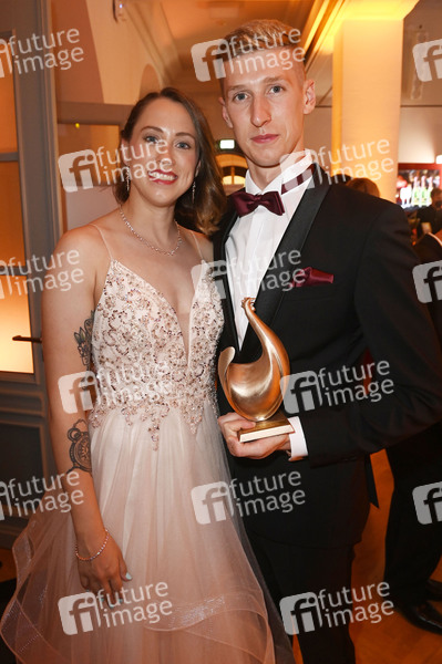 Sarah Köhler und Florian Wellbrock bei der 27. Verleihung der Goldenen Henne 2021 in der Kongresshalle am Zoo. Leipzig, 17.09.2021