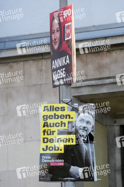 Wahlplakate von SPD und FDP zur Bundestagswahl 2025 in Berlin Mitte. Berlin, 13.01.2025