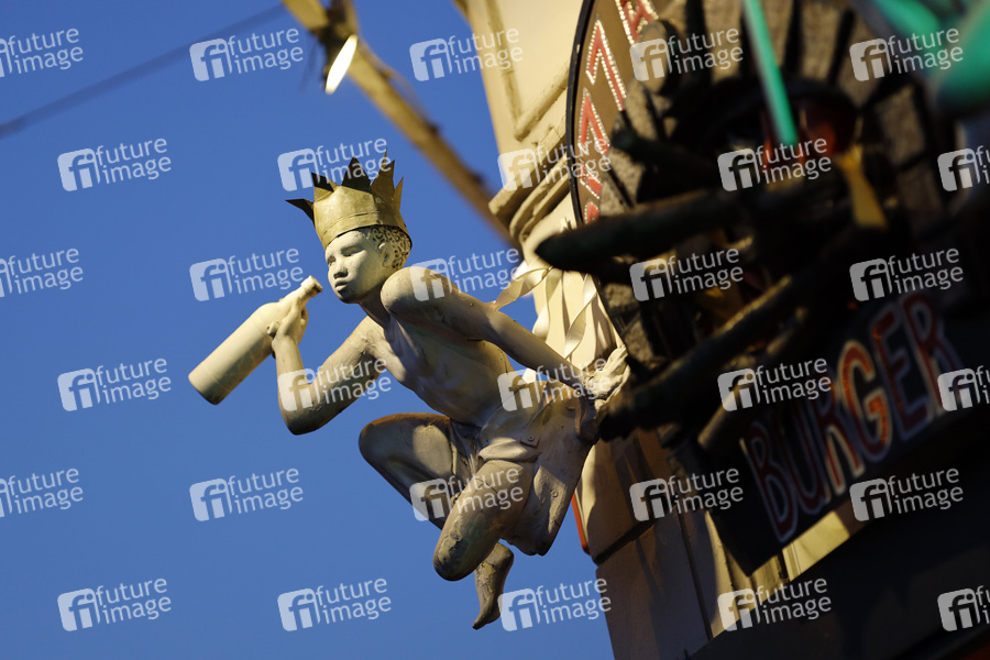 Ein junger Bacchus als Figur an einem Restaurant in Köln-Ehrenfeld. Bacchus ist ursprünglich die lateinische Form von Bakchos, einem Beinamen des Dionysos, Gott des Weines, des Rausches. Besonders die Gastronomiebranche leidet wirtschaftlich unter den Coronamaßnahmen. Einzelne Lokale wenden daher vorauseilend die 2G-Regel an, die nur noch Geimpften und Genesenen Zutritt zu den Lokalitäten erlaubt. (Themenbild, Symbolbild) Köln, 12.09.2021