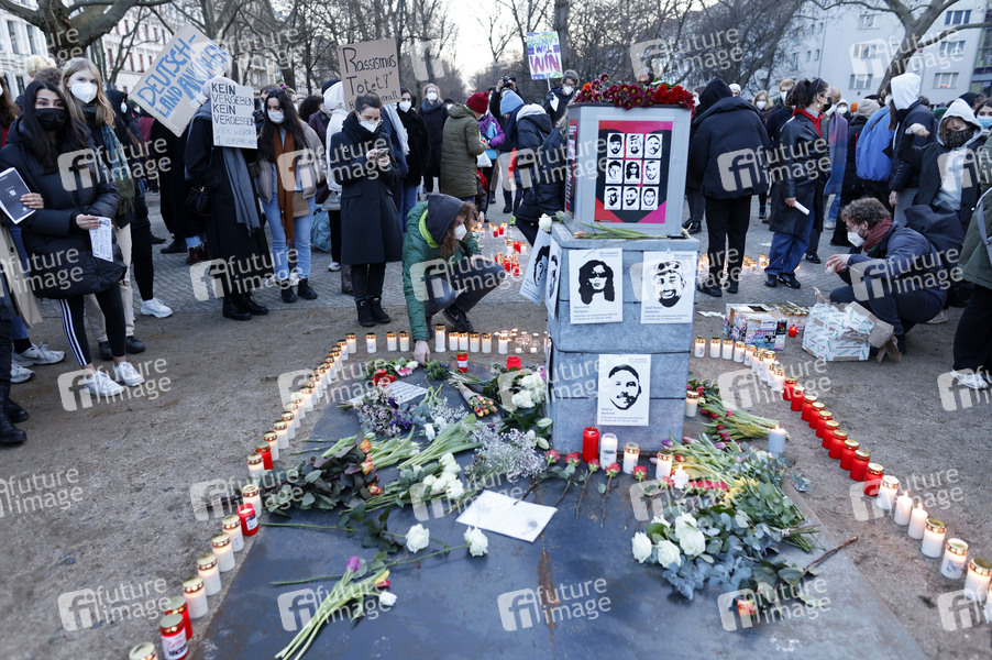 Gedenkveranstaltung zum ersten Jahrestag des rassistischen Anschlags in Hanau am Oranienplatz. Vor einem Jahr tötete ein Rechtsextremist in Hanau zehn Menschen und sich selbst. Berlin, 19.02.2021