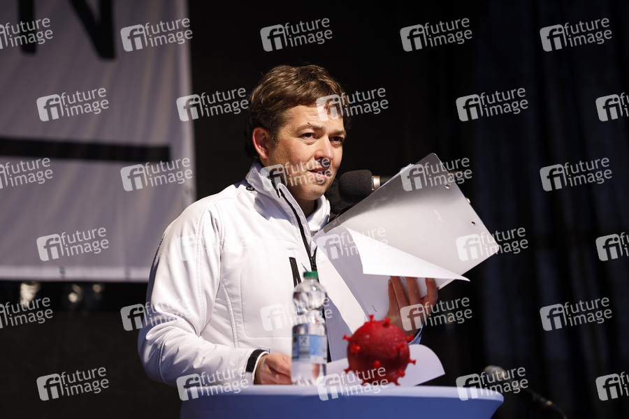 Querdenken-711-Gründer, Gründer, Aktivist, Regierungskritiker, IT-Unternehmer, Abstand, Abstandhalten, Abstandsregel, Abstandsregeln, Ansteckung, Ansteckungsgefahr, Banner, Beschränkung, Beschränkungen, Corona, Coronaeindämmungsverordnung, Coronaepidemie, Coronaerkrankung, Coronainfektion, Coronakrise, Coronaleugner, Corona-Leugner, Coronaskeptiker, Corona-Skeptiker, Coronavirus, Corona-Virus, CoViD19, Covid-19, Demo, Demonstrant, Demonstranten, Demonstration, Demonstrationszug, demonstrieren, Eindämmung, Eindämmungsverordnung, Einschränkung, Einschränkung von Grundrechten, Epidemie, Gefahr, Gefahren, Gefahrenlage, Gesundheit, Gesundheitsgefahr, Gesundheitsschutz, Hygienedemo, Hygiene-Demo, Hygienedemonstration, Hygienedemos, Hygiene-Demos, Hygienekonzept, Hygienekonzepte, Hygieneregeln, Hygienevorschriften, Impfgegner, Infektionsschutz, Infektionsschutzgesetz, keep distance, Kontaktbeschränkung, Kontaktbeschränkungen, Kontaktverbot, Kontaktverbote, Krise, Kundgebung, Kundgebungen, Leugner, Lock Down, Lockdown, Maske, Masken, Maskenpflicht, Mindestabstand, Pandemie, Politik, Protest gegen Coronamaßnahmen, Protestaktion, Protestdemo, Protestdemonstration, Protestmarsch, Protestplakat, Protestplakate, Protestzug, Querdenken, Querdenker, Sars-CoV-2, Schutzmaßnahmen, Shut down, Shutdown, Sicherheitsabstand, Verordnung zur Eindämmung des Coronavirus, Versammlung, Verschwörungstheoretiker