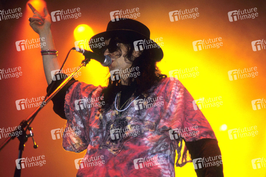 Wayne Hussey von The Mission live auf dem Reading Rock Festival 1986 an der Richfield Avenue. Reading, 22.08.1986