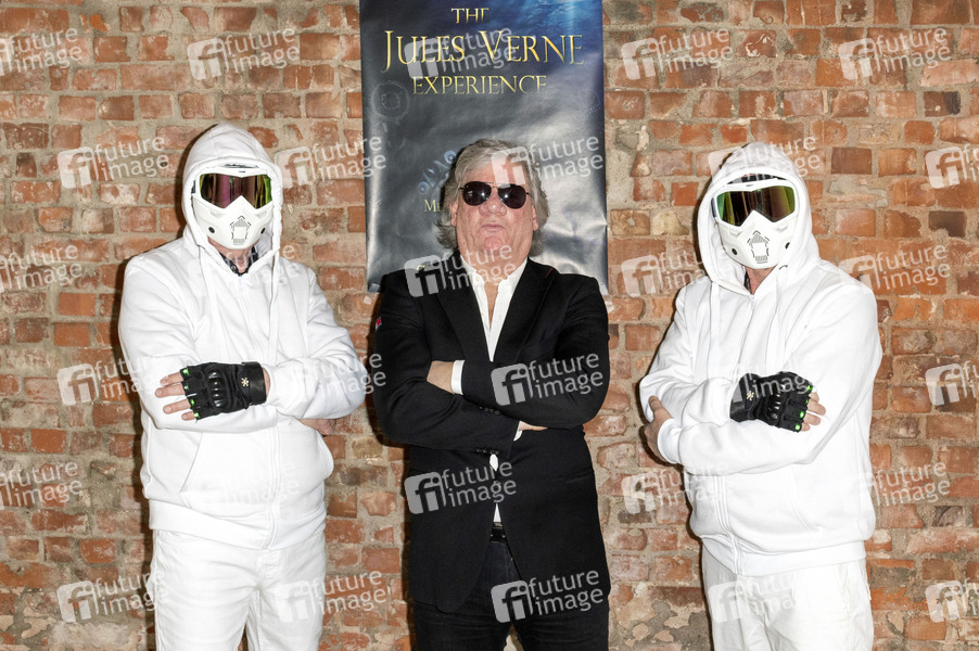 Claude-Oliver Rudolph mit Hayo Lewerentz und Ingo Hauss von U 96 beim Fototermin zum Fantasy-Musical 'Jules Verne, 20.000 Meilen unter dem Meer' im Tonstudio von U96. Hamburg, 21.04.2021