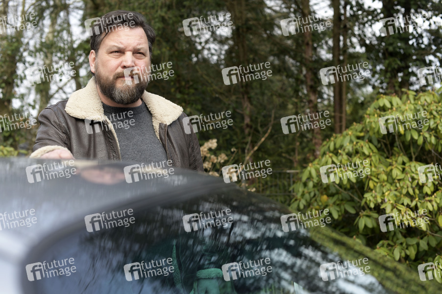 Sascha Gersak beim Fototermin am Set der ARD-Serie 'Finsteres Herz - Die Toten von Marnow 2' (AT) am Hornweg. Kleinburgwedel, 06.03.2024