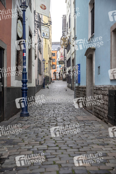 Menschenleere Salzgasse zur Auswirkung des Coronavirus. Köln, 19.03.2020