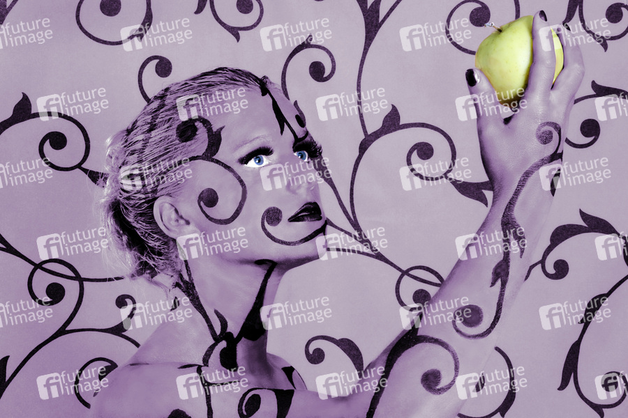 Bodypainting, Stoff, Erotik, Frau, nackt, drinnen, Apfel, weiblich, Muster, erotic, woman, nude, indoor, female, apple