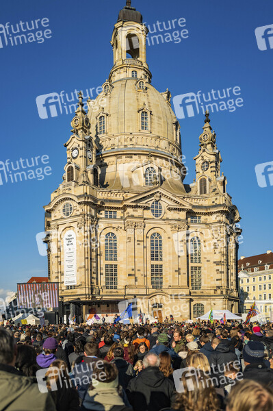 Demonstration unter dem Motto 'Wir sind die Brandmauer' gegen die AfD und den Rechtsruck auf dem Neumarkt. Dresden, 25.02.2024