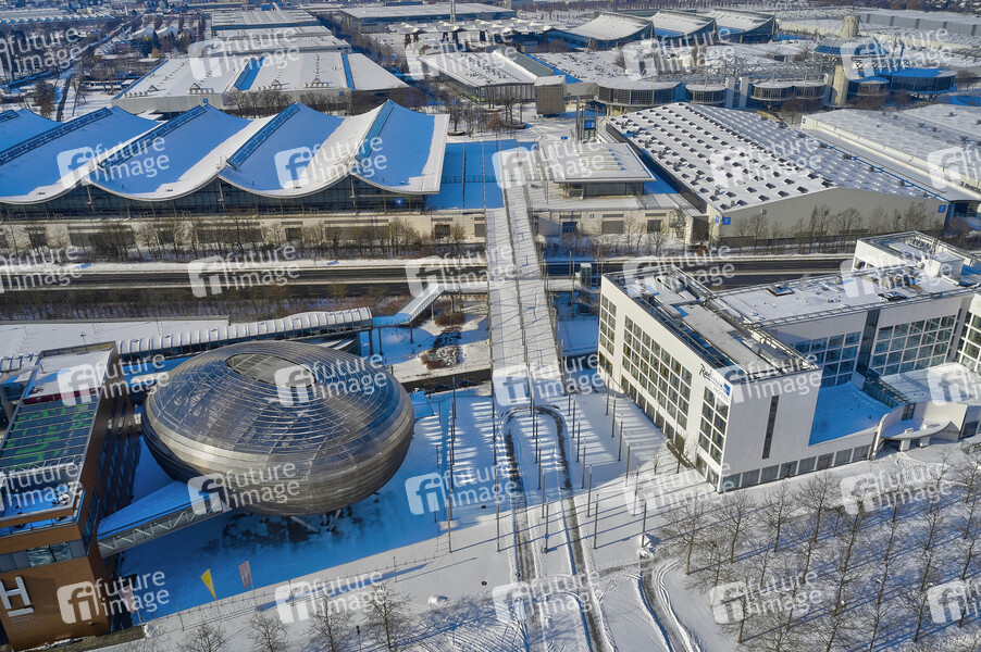 Luftbild vom Planet M auf dem EXPO 2000 Areal im Winter. Hannover, 11.02.2021