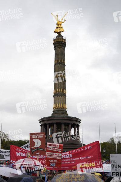 Friedensdemonstration unter dem Motto 'Nein zu Krieg und Hochrüstung! Ja zu Frieden und internationaler Solidarität' vor der Siedessäule am Großen Stern. Berlin, 03.10.2024