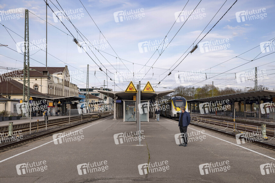 Tübingen Hauptbahnhof ist der größte Bahnhof der Universitätsstadt Tübingen und ein Nahverkehrsknotenpunkt in Baden-Württemberg. Tübingen, 13.04.2021
