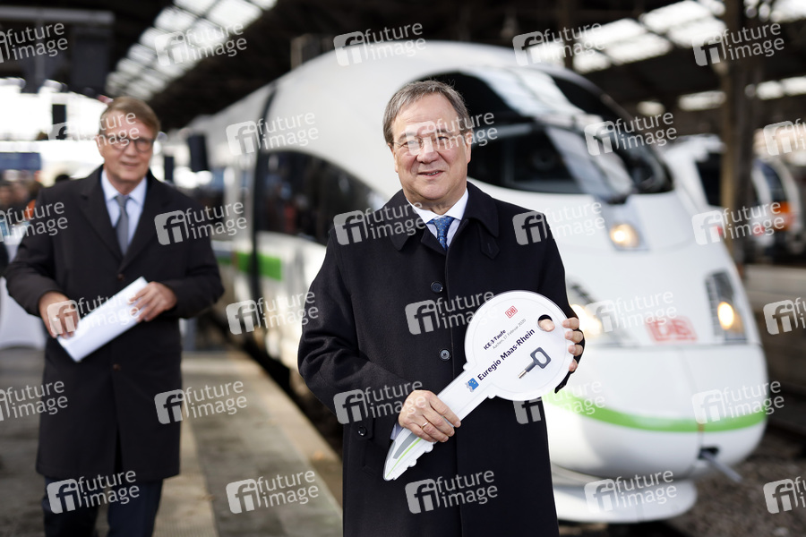 Armin Laschet und Ronald Pofalla bei der Taufe der ICE 'Euregio Maas-Rhein' im Hauptbahnhof. Aachen, 17.02.2020