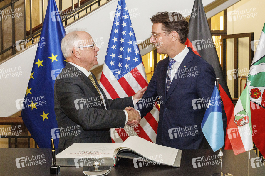 Tim Walz und Hendrik Wüst beim Empfang des Gouverneurs von Minnesota und früheren US-Vizepräsidentschaftskandidaten Tim Walz in der Staatskanzlei. Düsseldorf, 19.11.2025