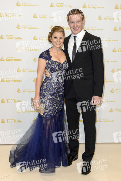 Felix Loch mit Freundin Lisa Ressle bei der Verleihung der Goldenen Sportpyramide 2014 im Hotel Adlon. Berlin, 16.05.2014