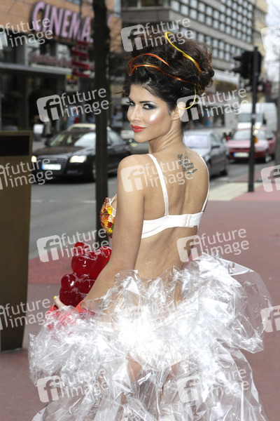 Micaela Schäfer präsentiert ihren persönlichen Berlinale Bären auf dem Boulevard der Stars, Berlin