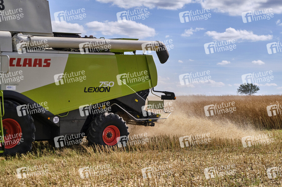 Claas Lexion 750, Erntemaschine, Frontsichelmäher, Nutzfahrzeug, Präzisionslandwirtschaft, Landwirtschaft, Ackerbau, Raps, Halme, Feld, Landwirtschaft, Dürre, Trockenheit, Wasser, Regen, Grundwasser, Wasserknappheit, Grundwasserspiegel, Grundwasserpegel, Trockenphase, Ernte, Ernten, Landwirte, Bauern, Acker, Äcker, Agrar, Agrarwirtschaft, Erntewetter, Ernteausfall, Ernteausfälle, Futterkrise, Missernte, Futter, Saat, Saatgut, Anbau, Fruchtbarkeit, Bauern, Bauernverband, Anbau, Bio, Dünger, Symbolbild, Symbolfoto