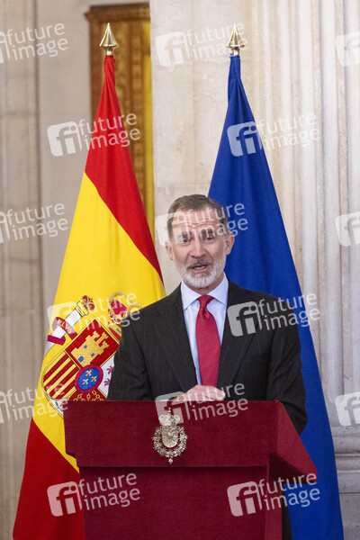 König Felipe VI. von Spanien bei der Präsentation des 'Digital Portal of Hispanic History' im Palacio Real. Madrid, 28.02.2023