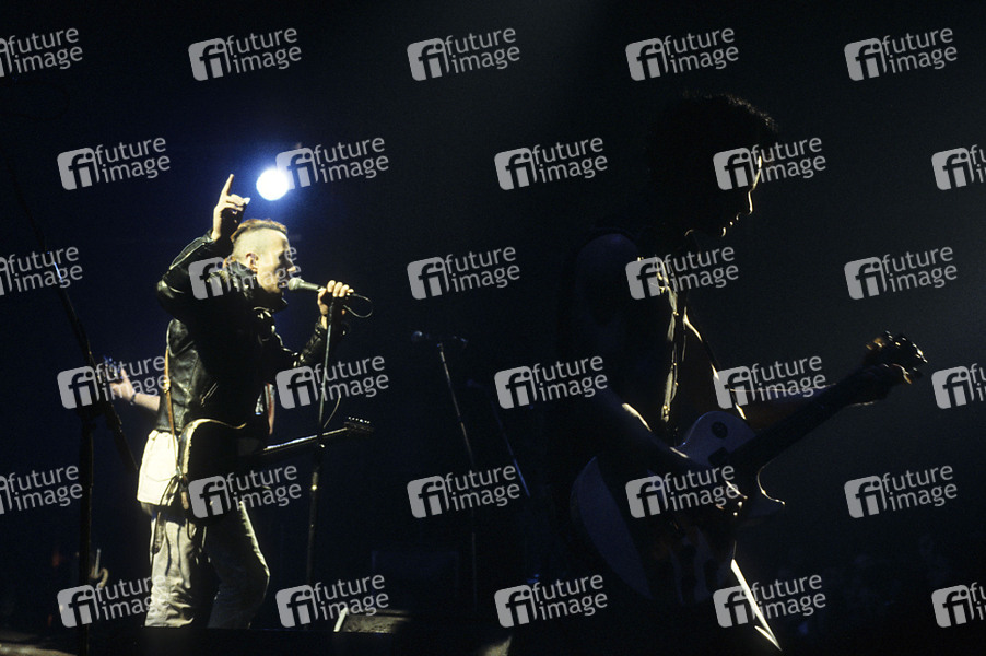 Joe Strummer und Vince White von The Clash live bei einem Konzert der 'Out of Control'-Tour in der Brixton Academy. London, 06.12.1984