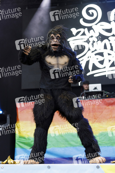 Affe beim Auftritt der Band 257ers live im Kulturgarten in der Bonner Rheinaue. Das Bonn Live Kulturgarten Open Air Festival 2020 ist Europas erstes Open Air Musik Festival unter Corona-Auflagen wegen der Covid-19 Pandemie. Bonn, 22.07.2020