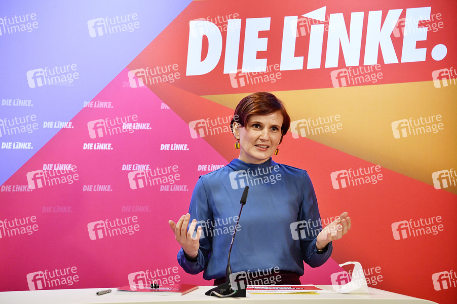 Katja Kipping bei der Vorstellung des Entwurfs des Wahlprogrammes der Partei Die Linke im Karl-Liebknecht-Haus. Berlin, 08.02.2021