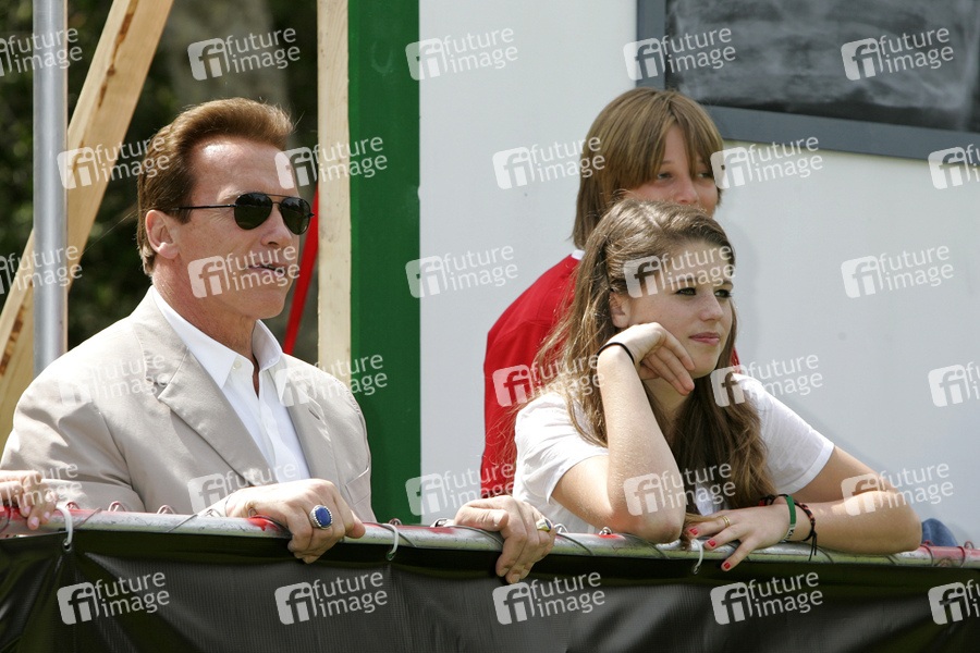 Arnold Schwarzenegger mit Tochter Katherine Schwarzenegger und Sohn Patrick Schwarzenegger bei der Premiere des Kinofilms 'The Benchwarmers / Die Bankdrücker' mit Softball-Spiel 'Stars gegen Jugend' im Sunset Canyon Recreation Center - UCLA Campus. Los Angeles, 02.04.2006