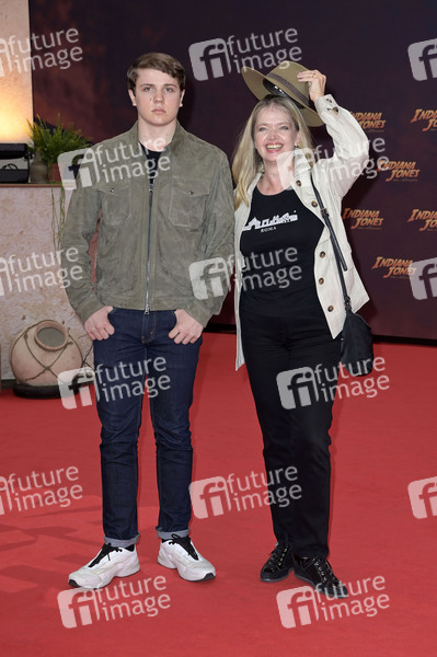 Julia Biedermann mit Sohn Julius Steffens bei der Premiere des Kinofilms 'Indiana Jones and the Dial of Destiny / Indiana Jones und das Rad des Schicksals' im Zoo Palast. Berlin, 22.06.2023