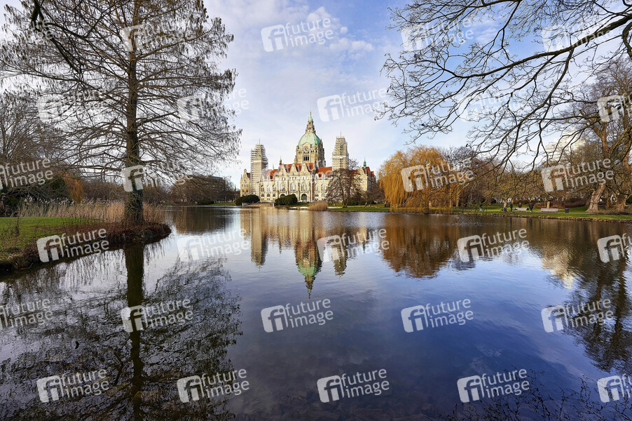 Das Neue Rathaus mit Maschteich im Maschpark. Hannover, 21.01.2021