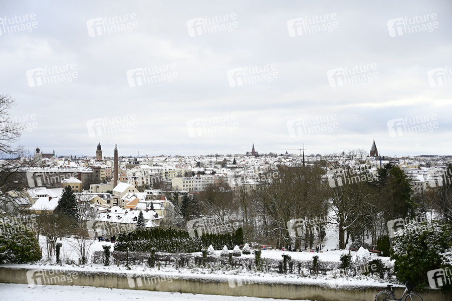 Winter in Görlitz. Blick vom Ölberg aus über die eingeschneite Stadt. Görlitz, 12.01.2025