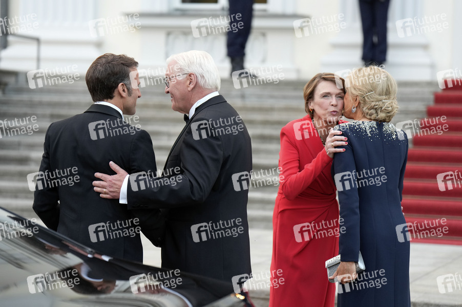 Emmanuel Macron, Frank-Walter Steinmeier, Elke Büdenbender und Brigitte Macron bei der Ankunft zum Staatsbankett zu Ehren des Staatspräsidenten der Französischen Republik im Schloss Bellevue. Berlin, 26.05.2024