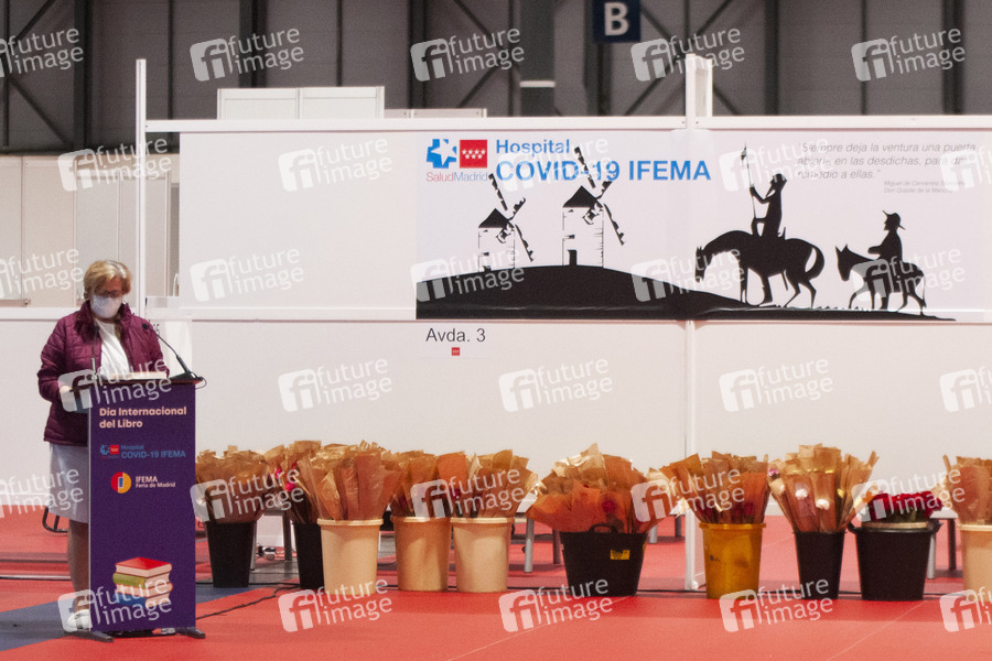 Hospital Covid-19 IFEMA, Dia Internacional del Libro, UNESCO Welttag des Buches und des Urheberrechts, Kultur, Lesung, Buch, Literatur, Krankenhaus, Hospital, Feldkrankenhaus, Medizin, Coronakrise, Corona-Krise, Kontaktverbot, Abstandsregel, Versammlungsverbot, Seuchenschutz, Quarantäne, Quarantänemaßnahme, Ausgangssperre, Mindestabstand, Social Distancing, Kontakt verboten, Ausgangsbeschränkung, Coronaviren, Virus, Viren, Corona, Covid-19, Sars-CoV-2, Coronavirus, Coronaviren, Corona-Virus, Corona-Viren, Ansteckungsgefahr, Epidemie, Pandemie, Infektion, Infektionen, Corona-Angst, Ansteckungsangst, Seuche, anstecken, Krankheit, Vorbeugung, Prävention, schützen, Schutz, Ausnahmezustand, Risiko, Risikobewertungen, Maßnahmen, Coronamaßnahmen, Corona-Infektion, Corona-Infektionen, Corona-Schutz