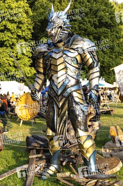 Ein Fantasy Ritter auf dem Mittelaltermarkt MPS Bückeburg 1 auf den MPS Wiesen-Campsites an der Petzer Straße. Bückeburg, 26.07.2025
