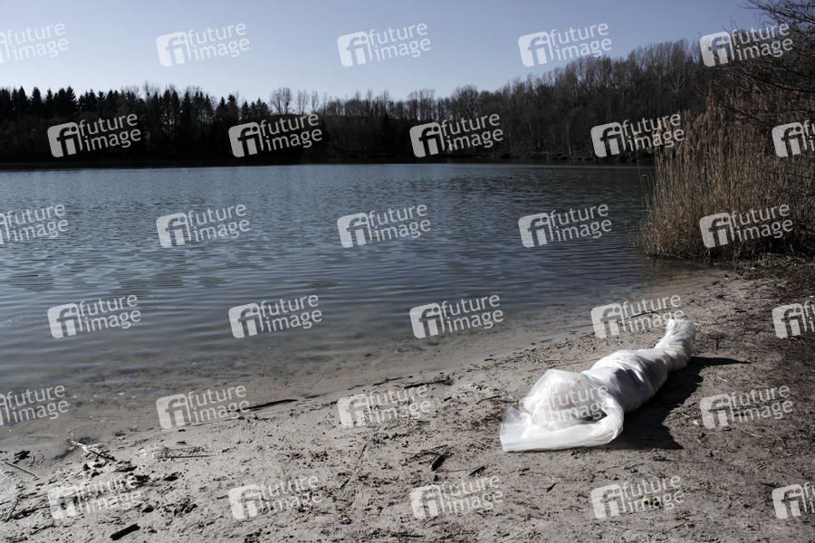 Kunst, Art, Unterhaltung, Entertainment, Kultur, Film, TV, Mord, Leiche, Fotokunstprojekt, Gewalt, tot, Tod, Gewaltverbrechen, Verbrechen, Wasserleiche, See, Ufer